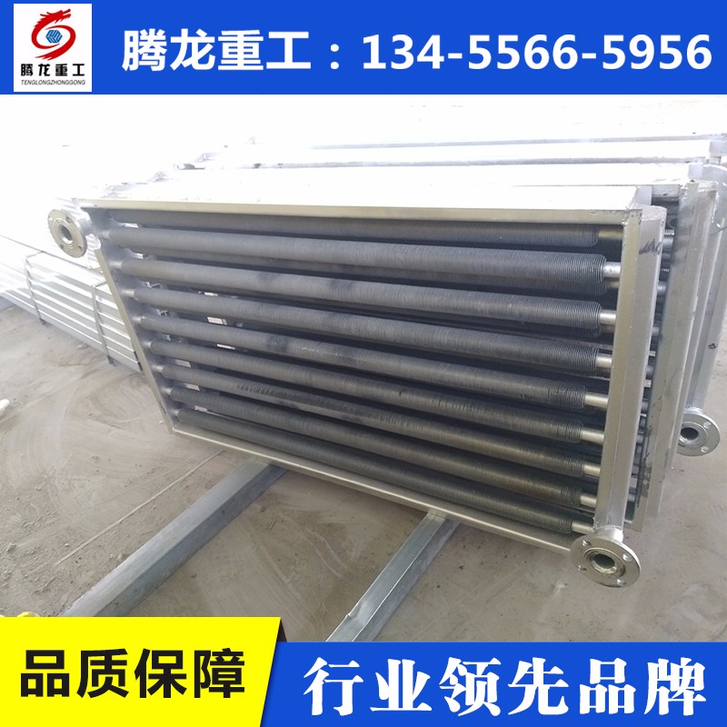 用于木材烘干,做內(nèi)循環(huán)(12次/小時(shí)),烘房尺寸11m*10m*5m,蒸汽壓力5kg(飽和),要求烘房溫度快速達(dá)到80℃。設(shè)計(jì)氣體流量:6600m3/h、進(jìn)風(fēng)溫度15℃;出風(fēng)溫度需滿足80℃,計(jì)算出釋放熱量126208.98 KCal/h 按照上述設(shè)計(jì)計(jì)算。需配2臺SRZ7×6D蒸汽散熱器一臺,耐高溫風(fēng)機(jī)SF4G-2一臺。SRZ鋼制散熱器為框架固定結(jié)構(gòu),采用Ф22× 2mm無縫鋼管繞制上16×0.5mm皺折鋼帶而成,呈螺旋狀,叉排排列整體熱鍍鋅處理,結(jié)構(gòu)緊湊、氣密性好、安裝方便。在木材烘干散熱器的空氣加熱系統(tǒng)中廣泛應(yīng)用。